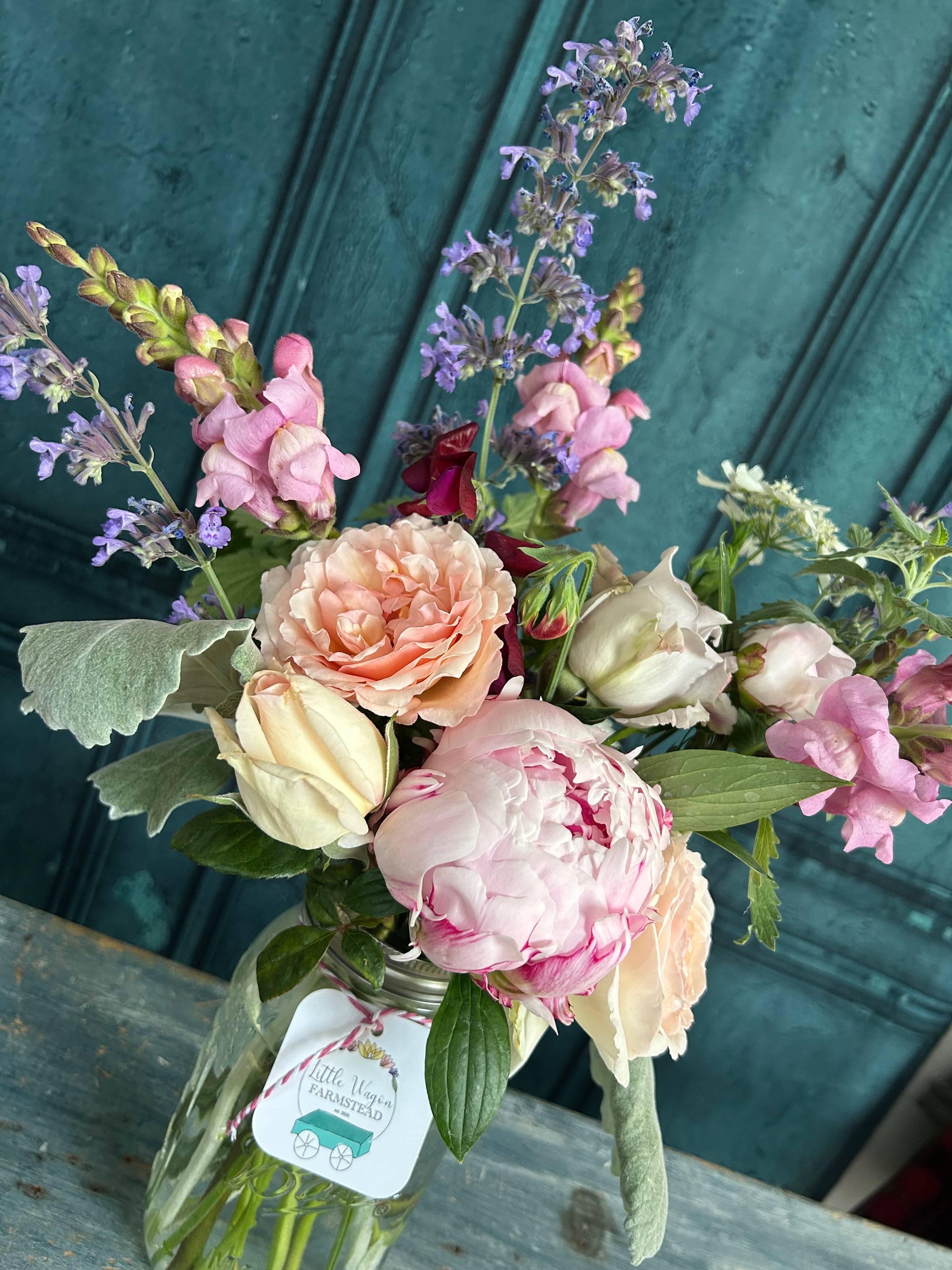 This subscription includes 5 non-consecutive weeks of spring blooms that you will pick up. Each bouquet will come in a Mason jar, and include a variety of our spring flowers, including, but not limited to, tulips, specialty daffodils, ranunculus and peonies.