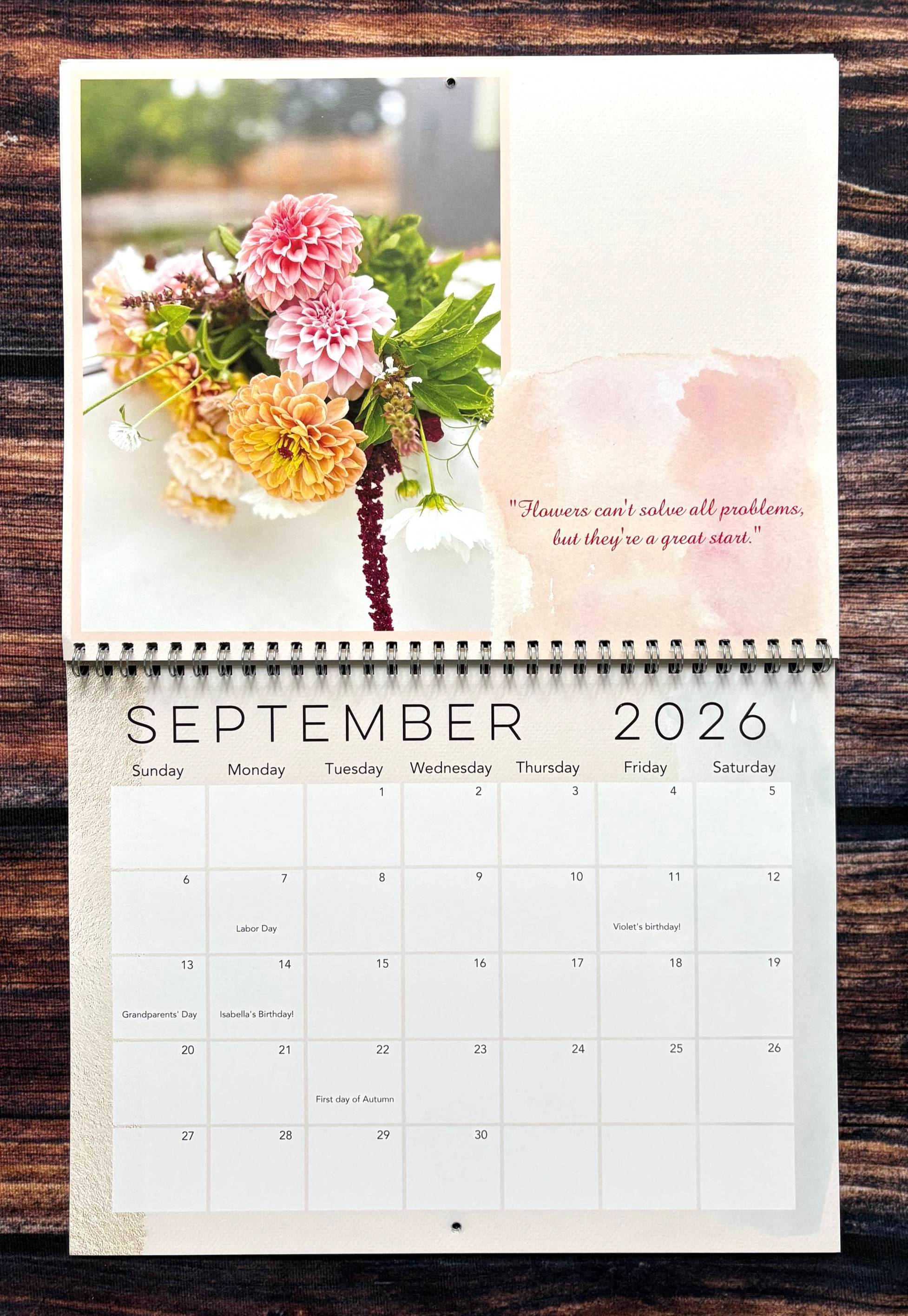 Enjoy our flowers all year long. Each month features a new stunning arrangement of flowers, and inspirational quotes to get you through each season. 2026 calendars are available NOW!